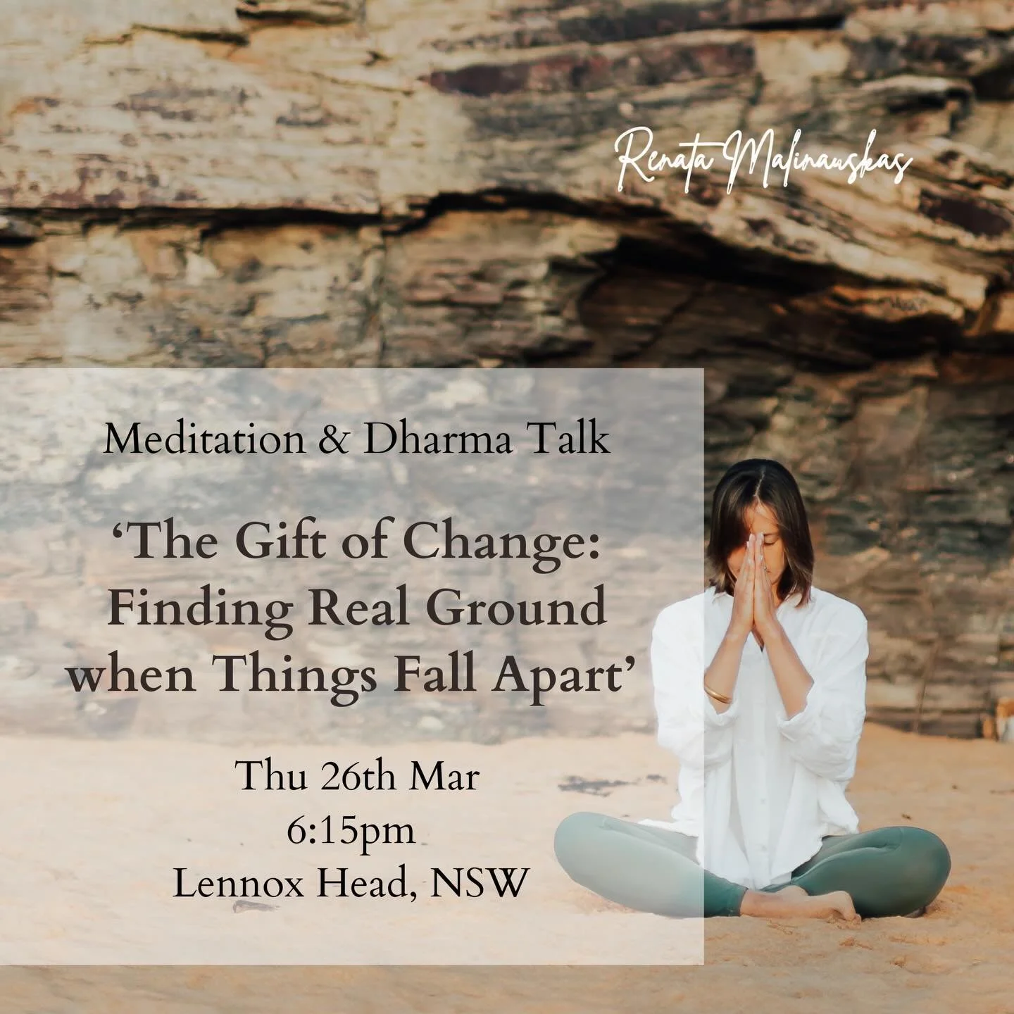 Join Renata for meditation and Dharma Talk at Lennox Meditation on Thursday 26th Mar 2026. Topic TBA. The sessions are run by donation.
